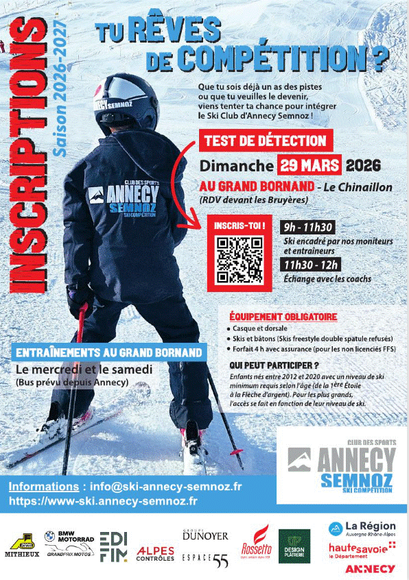 Depuis plus de 40 ans, le Club des Sports d’Annecy initie les jeunes coureurs annéciens au ski de compétition. Ce club emblématique propose aux jeunes passionnés de ski une formation d’excellence et un accompagnement vers le haut niveau.